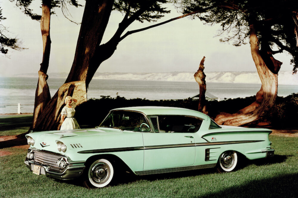 当時のシボレー・フルサイズカーには安価なモデルから順に150、210、ベルエアという3モデルが存在していたが、1958年モデルにはそれぞれに車名が冠され、デルレイ、ビスケイン、ベルエアと整理された。