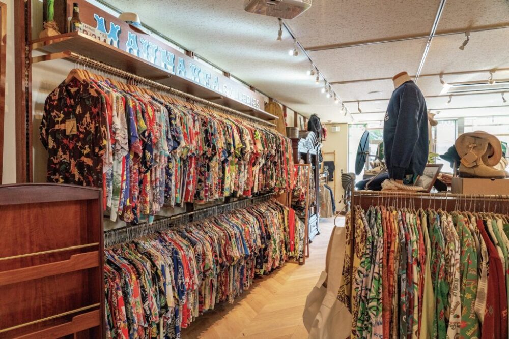 ヴィンテージアロハシャツのリプロダクションにおいて、質、量ともに世界一と誰もが認めるサンサーフ。そのコレクションがこのショップの目玉。毎年春から夏にかけてリリースされる新作はもちろん、過去の作品もストックされる。マウナケア・ギャラリーズにしか存在しない別注アイテムなどもあり、アロハシャツファンにとっては聖地となっている。サイズバリエーションも豊富で、女性客も満足できる。一年中、ハワイのカルチャーに触れられる貴重なショップだ。