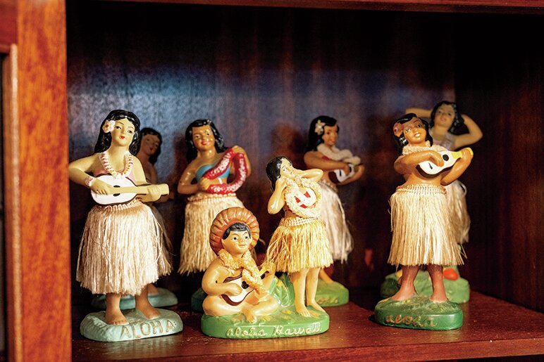 ハワイのヴィンテージカルチャーを伝えるマウナケアギャラリーズは、アロハシャツ以外にも多くのヴィンテージアワイアナがディスプレイされている。世界的にコレクターの多いフラドールも、コンディションの良いものばかりが揃う。