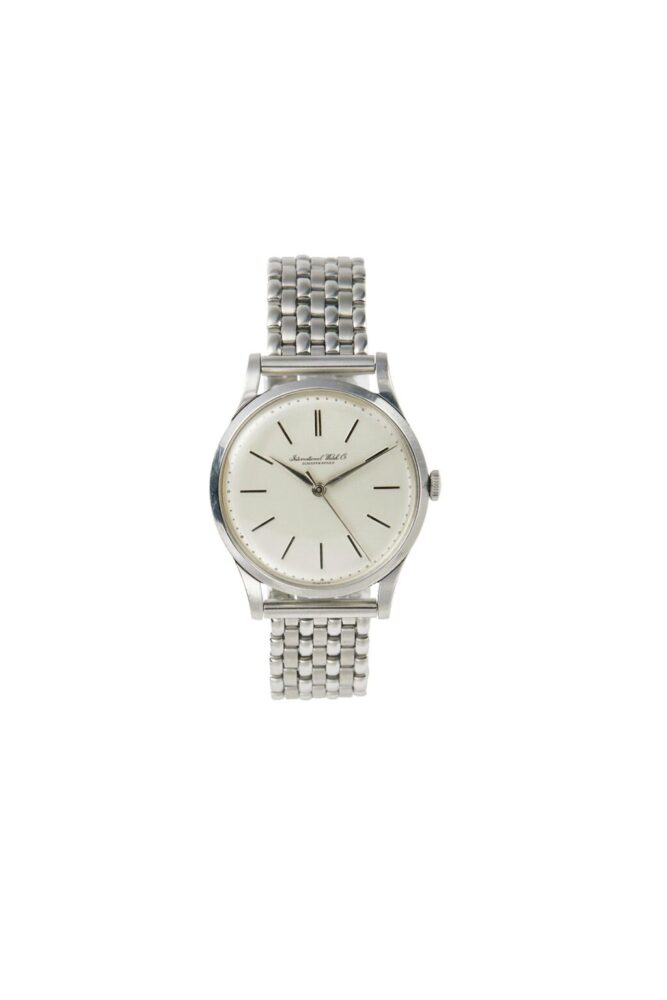 同じIWCでも’40年代後半になるとイメージが変わってくる。スタンダードな35ミリケースのステンレスモデル。立体的なインデックスとドルフィンハンドが絵になる。39万6000円