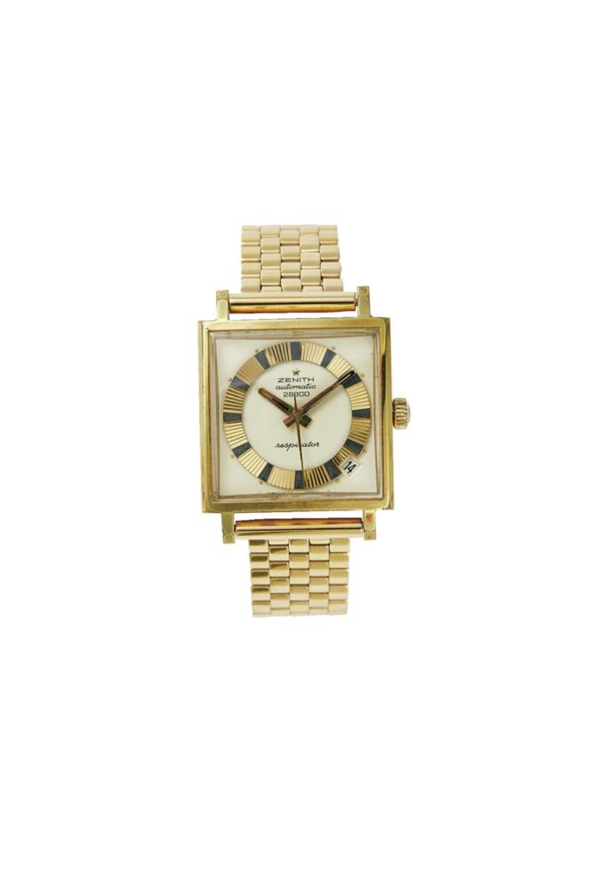 なんとも個性的な文字盤とスクエアケースがマッチしたゼニスの自動巻モデルは1960年代。文字盤には回転数である28800の表記が入る。29万7000円