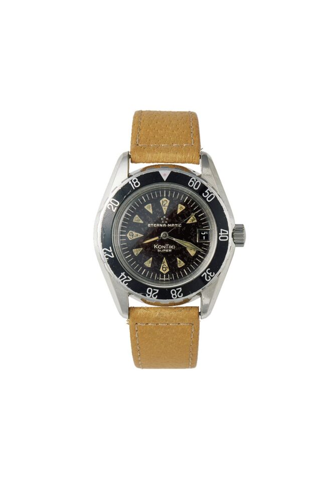 各メーカーからダイバーズウォッチが発売されたのも’50年代の大きな流れ。エテルナのスーパーコンチキは1960年代。凝縮感あるデザイン。69万3000円