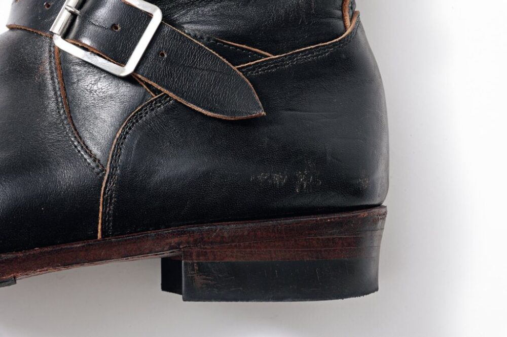 S/なるべく再現できるところは再現しようとしました。ただし、やはり今のユーザーが求めているもの──ホースバットの革だとか、つま先に先芯がないものとか、そういう世の中のニーズを取り入れつつ、あとはヒールの湾曲もそうなんですが、このベースになっている後藤さんのヴィンテージのエンジニアブーツの特徴を取捨選択して、新作エンジニアブーツに落とし込んでいます。