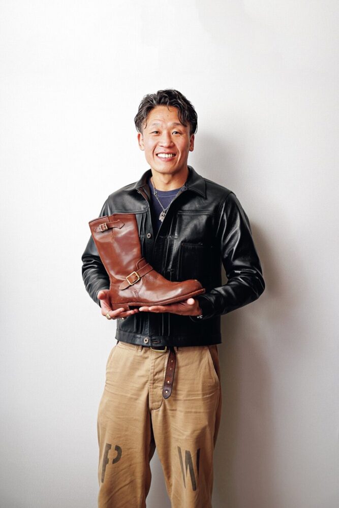「普段からエンジニアブーツを愛用するので、この新作エンジニアーブーツを俺流に育てたいって思ったね。先芯無しとか茶芯のホースバットとか、俺の大好物だし(笑)。ディテールも変わっていてGOODだぜ!」