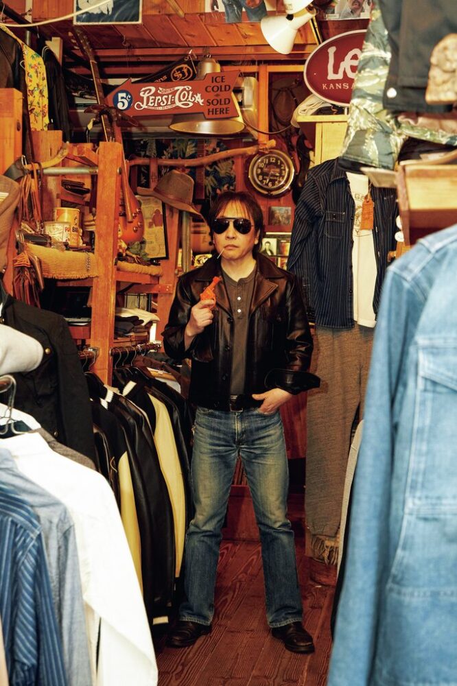 アイクジャケットにオリジナルの細身のジーンズ、レイバンのアウトドアーズマン、手にはおもちゃのピストルを持ち、マッチ棒を咥える……。映画『コブラ』でシルベスター・スタローンが演じるマリオン・コブレッティ刑事、通称“コブラ”になりきっているのは、東京・旗の台にあるアメカジショップ「フルネルソン」のオーナー、水野さん。アイクジャケットは、以前映画と同様にウール素材でオリジナルを製作していたが、今回はカーフレザー。