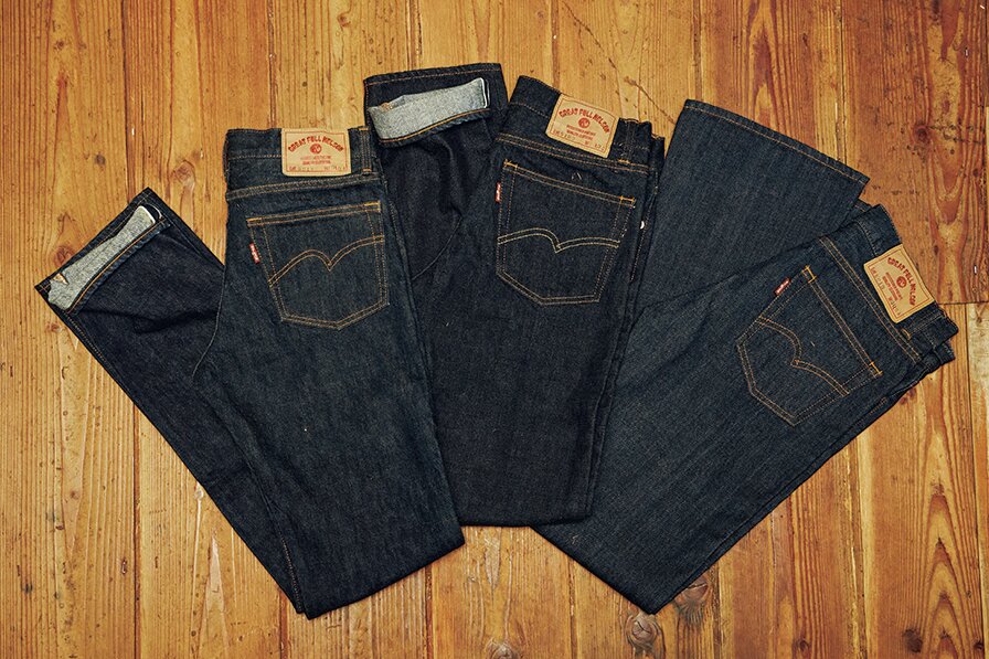 オリジナルジーンズ。左から’80年代の501を日本人向けにした5011、スーパータイトの5150-ZIP(共に1万9580円)、シューカット5018(1万7380円)
