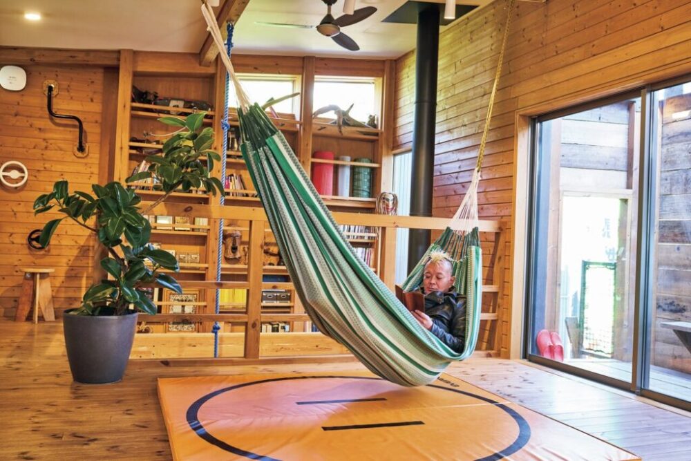 BESSのモデルの中でも、もっとも遊び心溢れるモデルとして人気なのが、こちらのワンダーデバイス。この空間をどう使いこなすかは、すべて暮らす人の自由だ。天井からハンモックを吊るして、のんびり過ごすのも悪くない。ハンモックに揺られながら昼寝するなんて、贅沢すぎるでしょ!