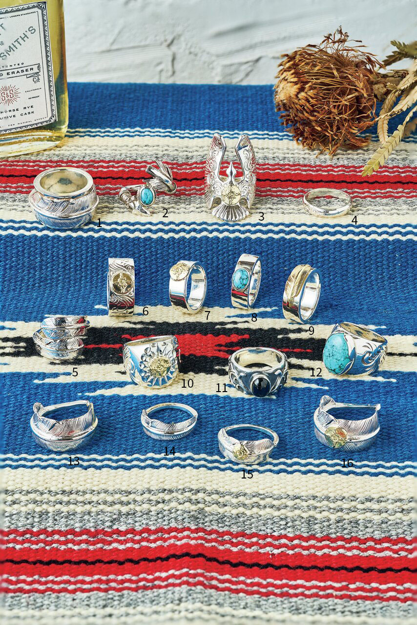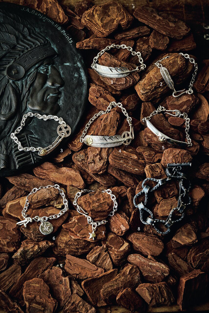 完成度の高いファーストアローズ作品はそれ単品でも十分絵になるが、よりワイルドに楽しむなら、複数のアイテムを組み合わせるのがおすすめ。時にはシンプルに、時にはゴージャスに。TPOに合わせてコーディネイトできたら貴方はシルバー上級者だ。組み合わせに迷ったらスタッフが相談に乗ってくれるのでぜひ自分だけのオリジナル作品を作り上げてみてほしい。