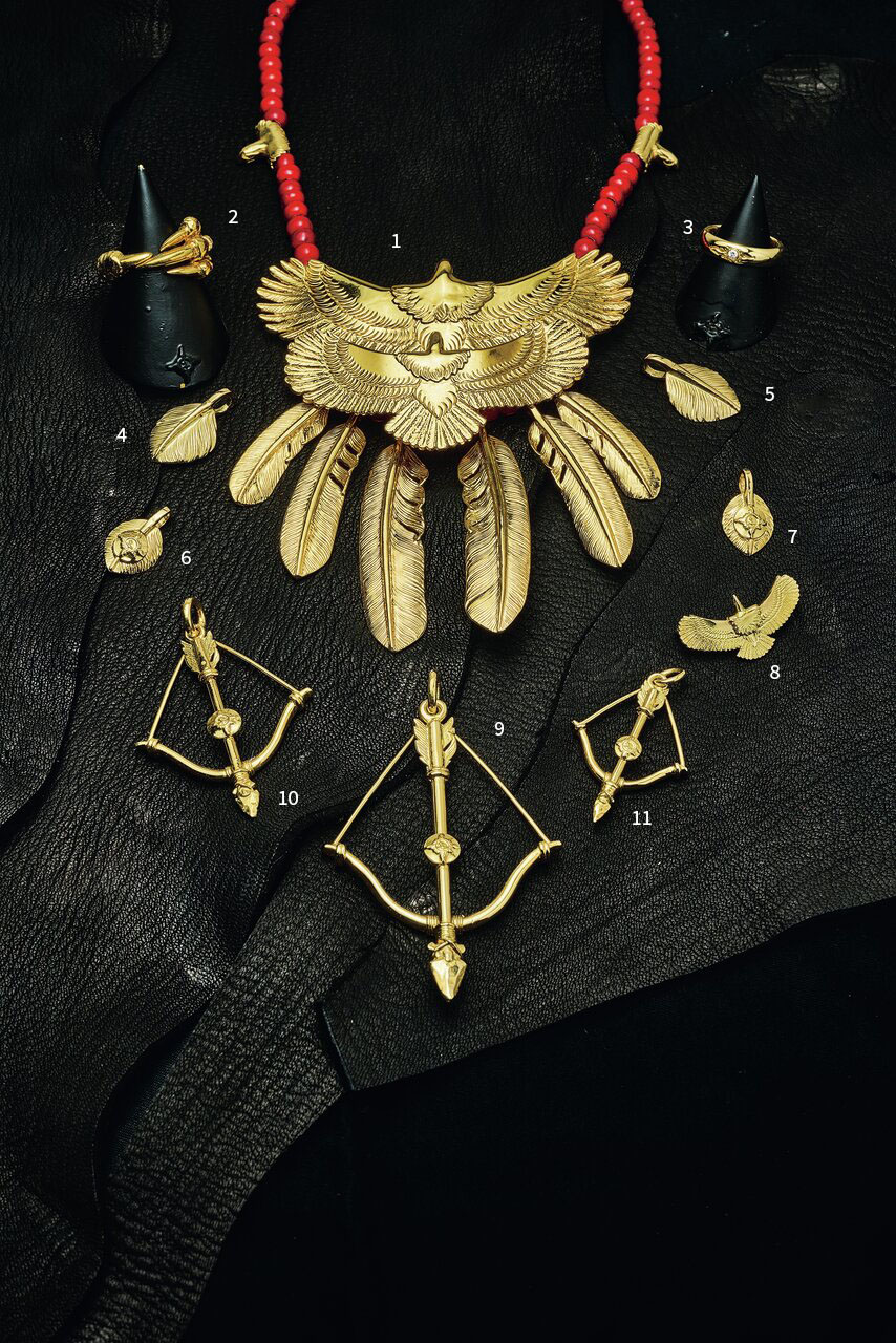 ネイティブアメリカンのスタイルをルーツに持つファーストアローズは、彼らと同様にイーグルやフェザーは ”勇気”、太陽は “エネルギー・パワー”、ファーストアローは “幸運へ導かれる”、アラベスク(唐草模様)は “生命力・実り” などそれぞれに意味がある。そして、全ての作品に装飾品としてはもちろん、お守りや人生を好転させるきっかけとなってほしいという想いも込めて職人たちは作品と向き合っている。