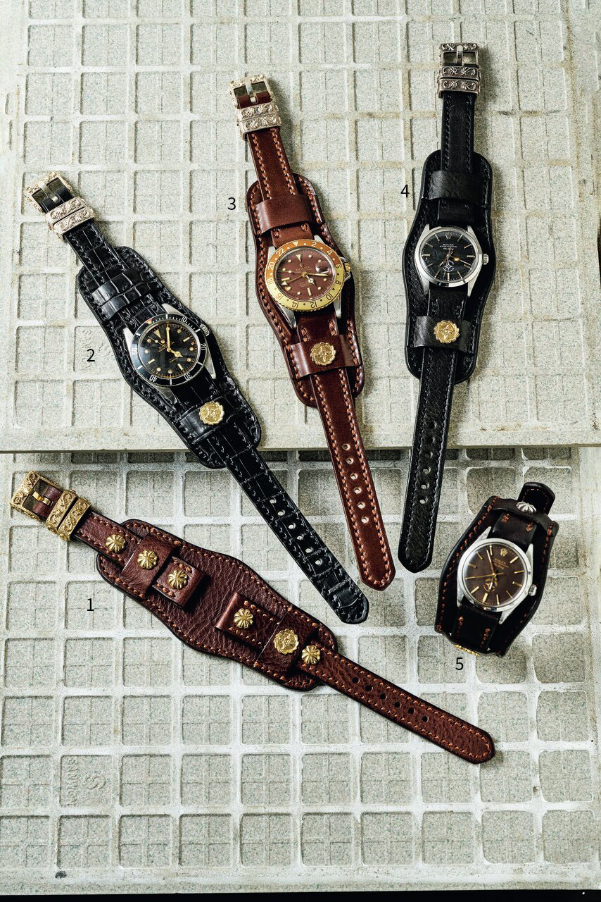 2022年に登場以来、ロレックスマニアを中心に支持を集めるウォッチベルトシリーズ。新作のカードケース同様、素材にはコードバンとクロコダイルのほかにイタリアの老舗タンナーから取り寄せたブッテーロ、ミネルバボックスという牛革を使用。さらにシルバーや18金のバックルやベルトループ、コンチョで装飾が施されるなど、最高級の時計に相応しい風格を備えた仕上がりとなっている。