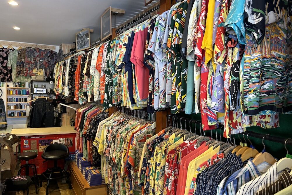 現在では国産のデニムブランドを筆頭にアロハシャツやレザーブランドなどをメインにしたセレクトを誇る。とくに注力しているのはアロハシャツで、SUN SURFの取り扱いは九州随一という。