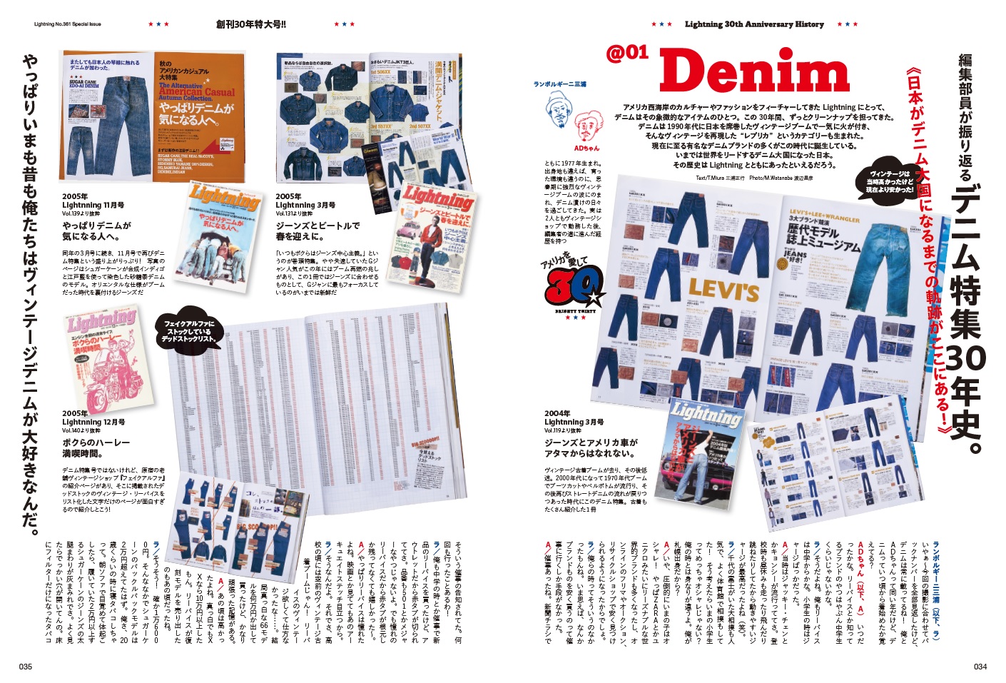 アメリカ西海岸のカルチャーやファッションをフィーチャーしてきたLightning にとって、デニムはその象徴的なアイテムのひとつ。1990年代に日本を席巻したヴィンテージブームで一気に火が付き、そんなヴィンテージを再現した“レプリカ”というカテゴリーも誕生。いまでは世界をリードするデニム大国になった日本ですが、その歴史はライトニングとともにありました。そんな様子をランボルギーニ三浦とADちゃんが追いかけます。
