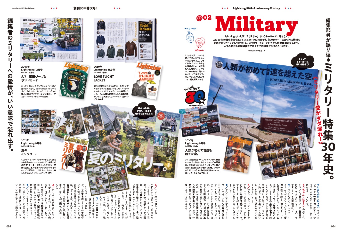 ライトニングといえば「ミリタリー」は外せないキーワードのひとつ。ミリタリークロージングから戦闘車両に至るまで、いつの時代も質実剛健なプロダクツに興味津々でした。ミリターリー大好きモヒカン小川とADちゃんが、いままで取材してきたミリタリーネタやウンチクを披露しています。