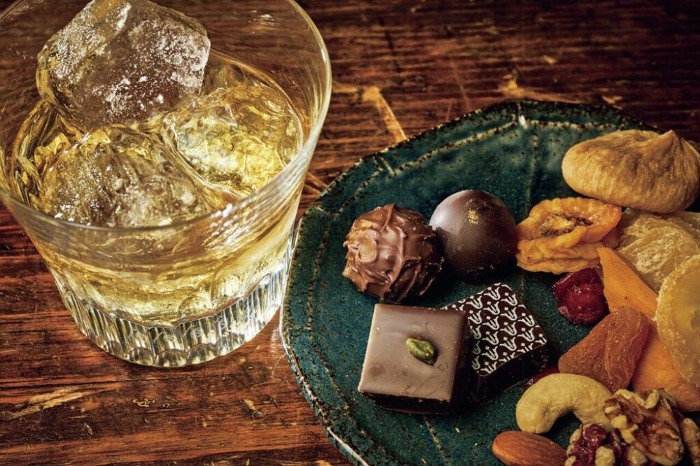 このウイスキーのバニラやキャラメルの芳醇な風味には、甘さとちょっぴり苦みがあるチョコレートがよく合う! 口の中で両者が組み合わさり、見事なマリアージュを味わうことができる。