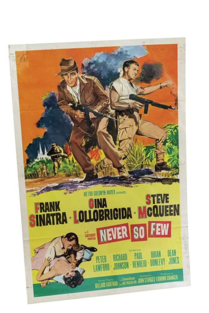 スティーブ・マックイーン、フランク・シナトラが出演した1959年の 『NEVER SO FEW(邦題:戦雲)』の公開当時のポスター。ファンにはお宝となる1枚。約68.5×104.5㎝。3万30円