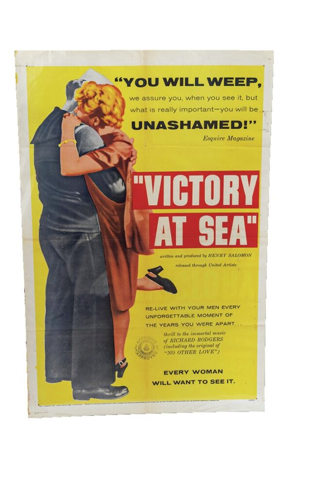1954年製作(日本公開は1967年)の海戦記録映画『VICTORY AT SEA(邦題:世界海戦記)』の米国公開当時のポスター。約69×104.5㎝。2万8380円