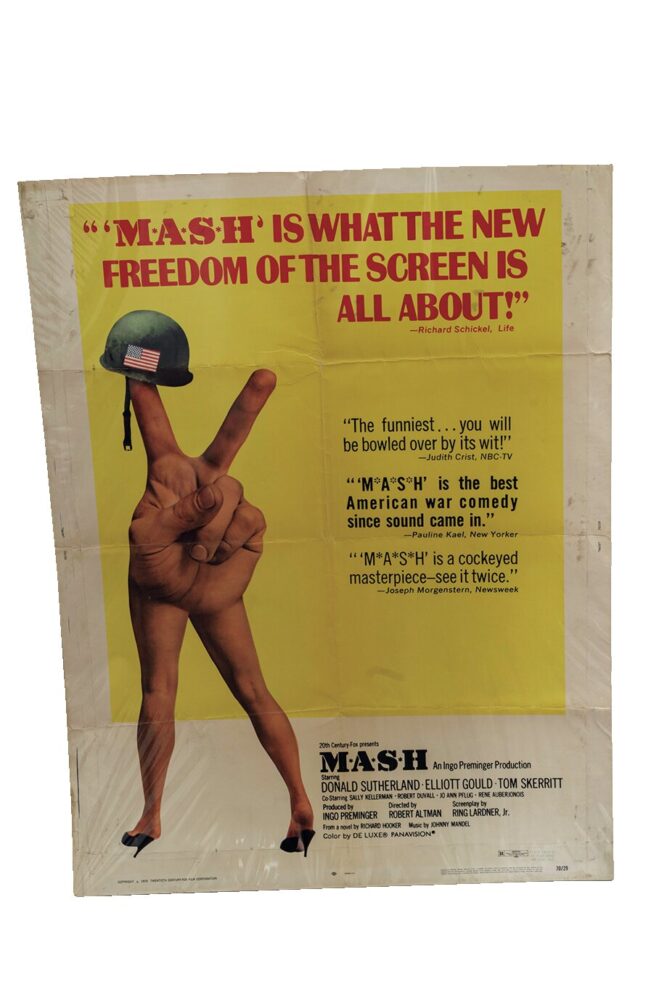 戦争コメディの傑作『M*A*S*H(邦題:マッシュ)』の公開当時の劇場用ポスター。マッシュの店名ともなった映画でミリタリー好き、映画好きにもファンが多い名作。1970年。約76.3×101.2㎝。2万20円