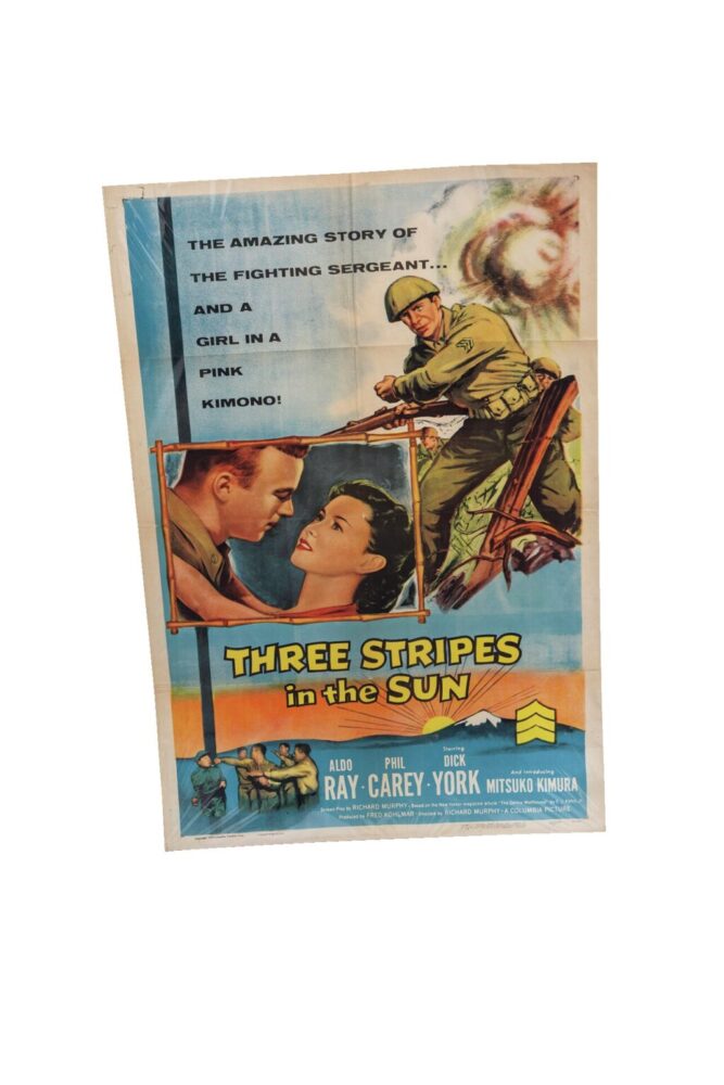 1955年公開の戦後の日本(大阪と大津)および朝鮮戦争を舞台とした『THREES TRIPES IN THE SUN(邦題:優しい狼犬部隊)』の公開当時のポスター。1951年に雑誌『ライフ』のカバーガールにも抜擢された女優・木村三津子がYuko役で出演。約68.5×104㎝。1万8920円