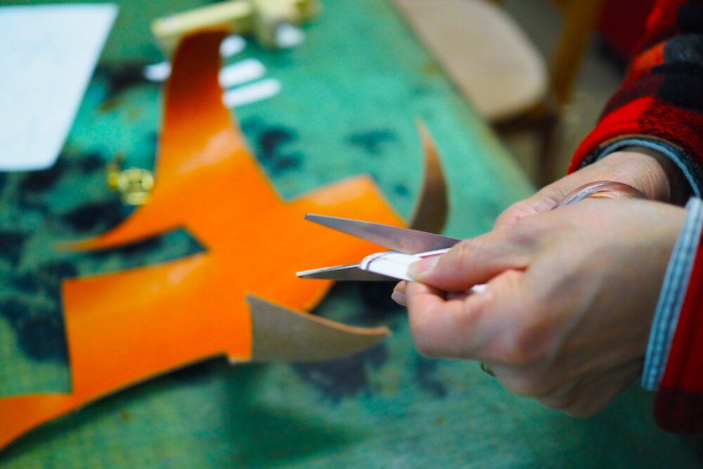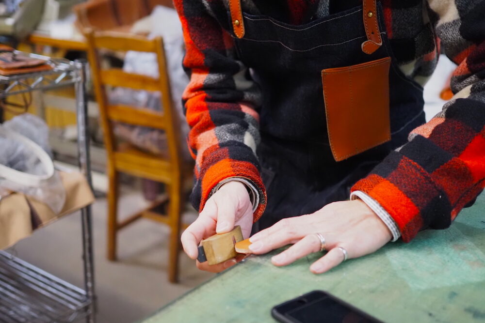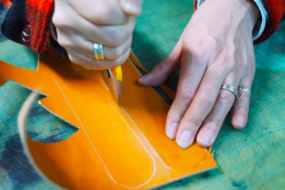 大量生産品の場合はパターンを金型に起こしてくり抜いて裁断することが多いそうだが、スターディでは基本的に手裁断を採用している。ハンドカットならではの味わいがクラフトマンシップを感じる商品作りにも役立っているのだ。