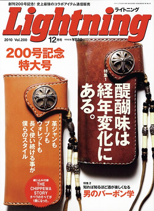 ライトニング2010年12月号で、記念すべき200号に。 多くのブランドと200号記念コラボアイテムを製作。それに合わせてLightningオリジナル織りネーム製作し、通常はレッドのところ、わずかの割合でゴールドの織りネームが混ざるという、レア感をあおるよう仕掛けたが、それに関する反響はほとんどなかった。
