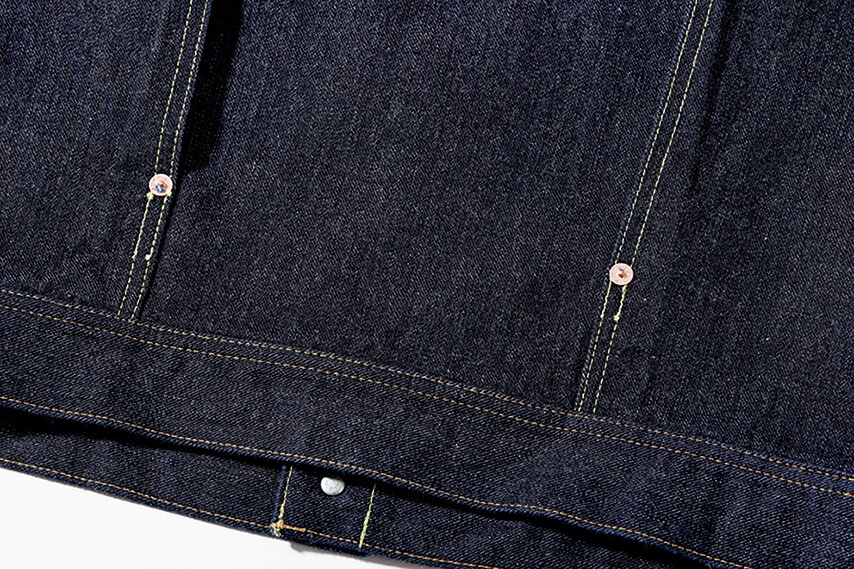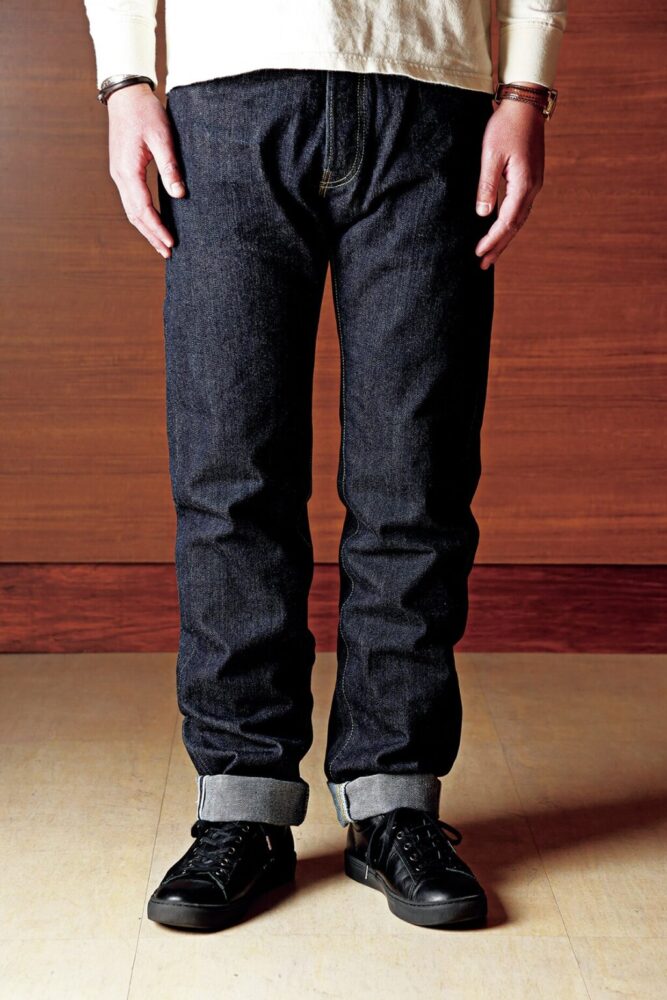 同ブランドの代表モデルLot.3005と同じ糸番手、同じ14.5oz.デニムというスペックだが、大きな違いはジンバブエコットンを使った左綾のデニムを使っていること。また極限まで打ち込み本数(密度)を増やしたという生地は、未洗いの状態では硬く荒々しい印象を受けるが、着用を繰り返すことでジンバブエコットンならではの滑らかな生地感が味わえるという。