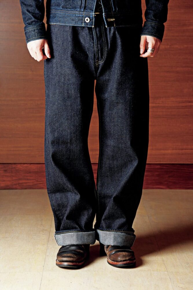 人気のワイドシルエットもラインナップ。通常よりも大きいサイズを選ぶことで、存在感のあるボトムスを簡単に作り出せる。エンジニアなどプルオン系のワークブーツとも相性が抜群だ。タフなワークスタイルを最短距離で狙うなら、このジーンズをチョイスするのが正解。3万7400円