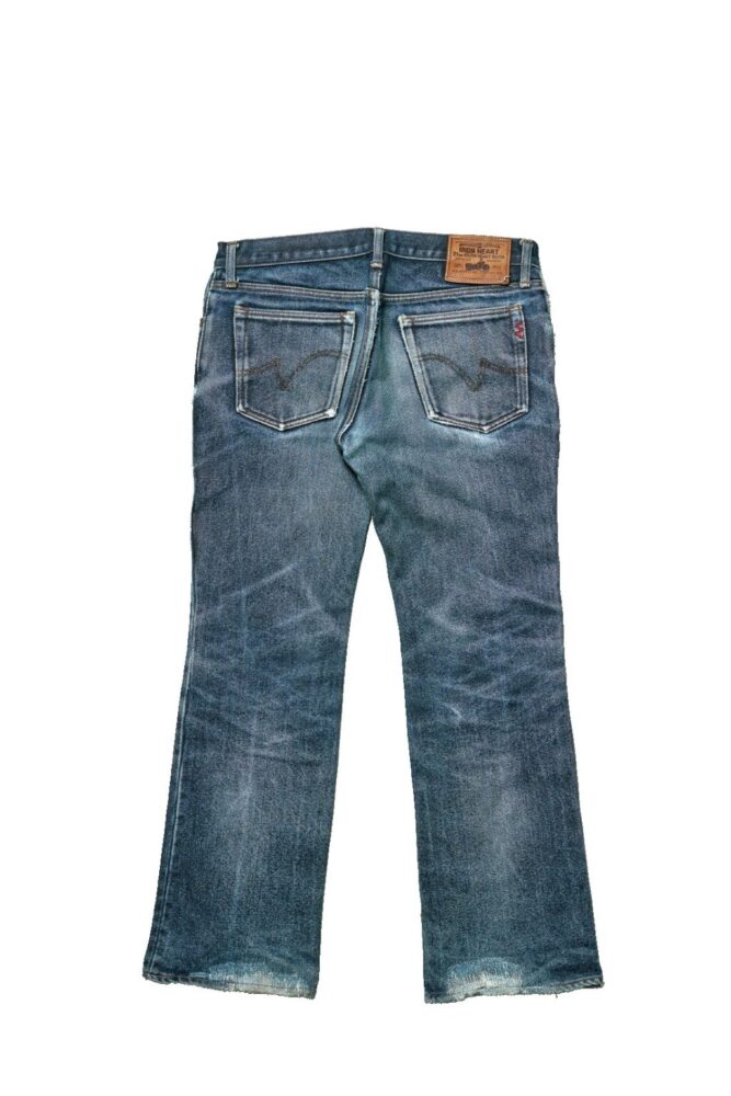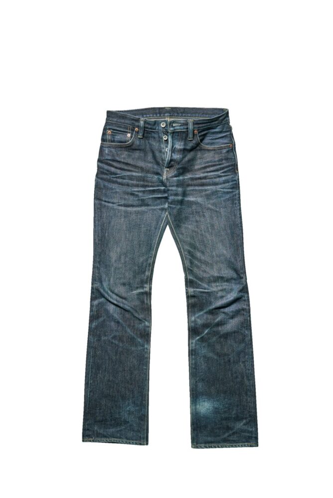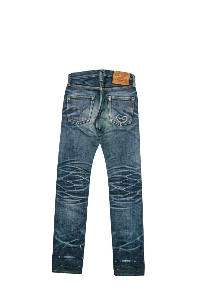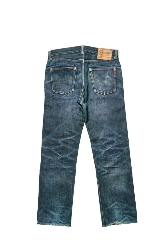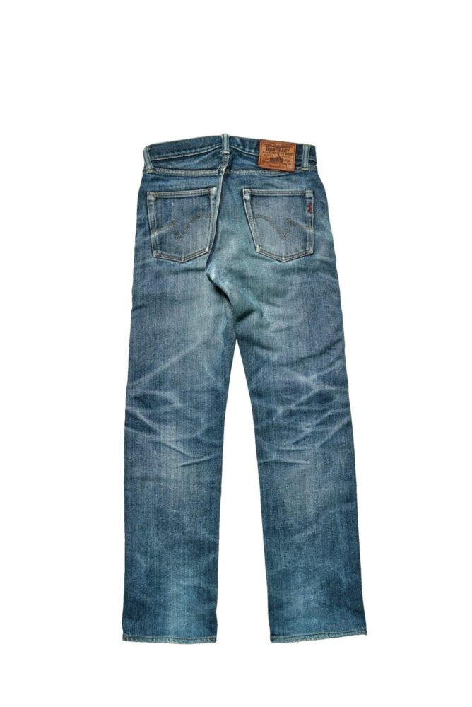 スイスのVMCの25周年記念で製作したアイアンハートの25ozデニムの原点。21oz以上に濃淡がはっきりした太いヒゲや皺がその真骨頂。最初は手強いが根気強く穿き込めば無二の屈強なエイジングを堪能できる。