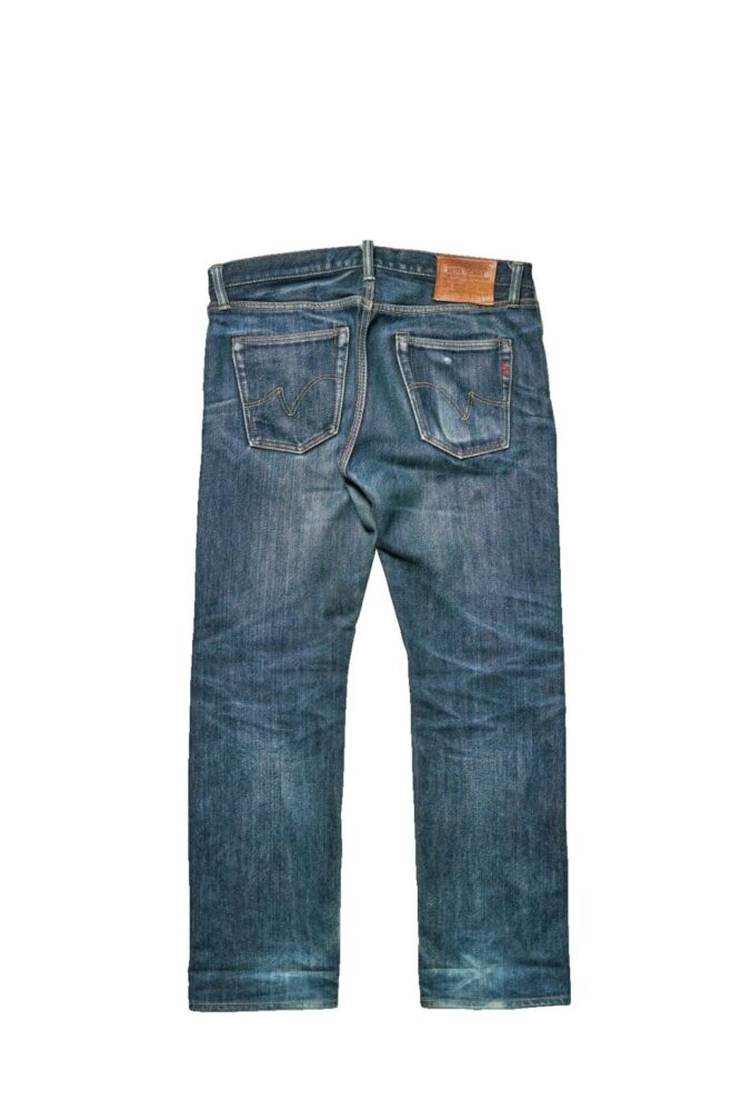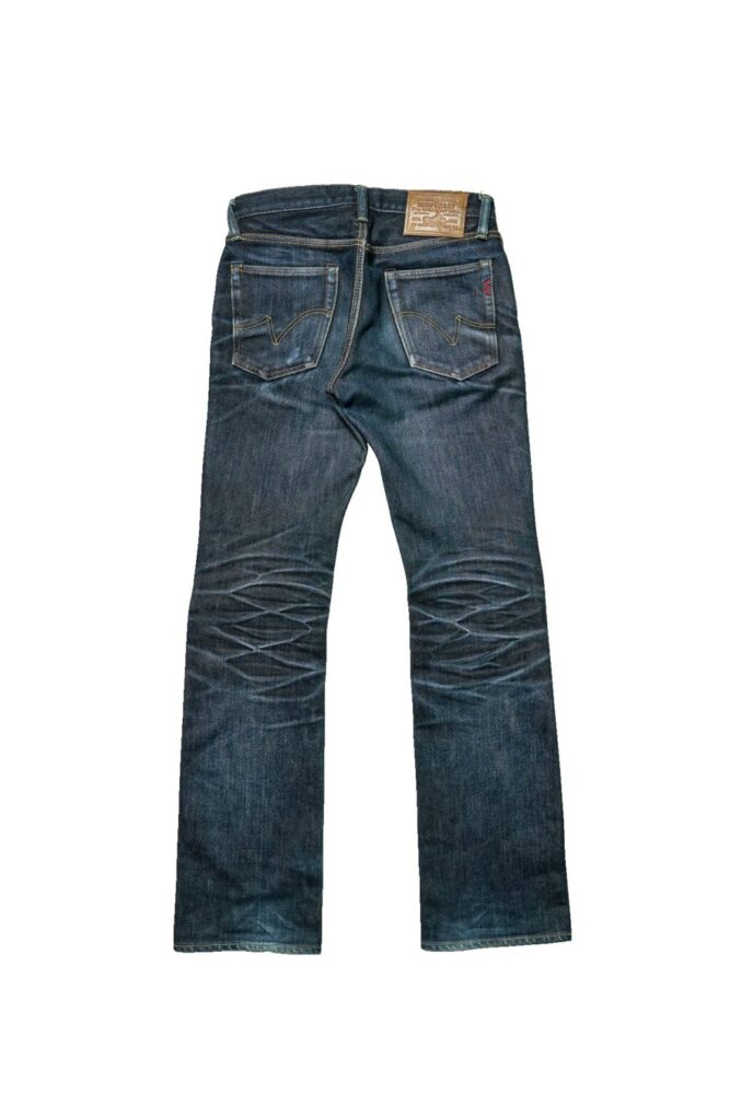 ヘビーオンスデニム愛好家の要望に応え、普段穿きの限界をイメージして開発した25ozデニム。綾目が強調された立体的な色落ちの質感が特徴で、最初は手強いが根気強く育て上げれば、極太のヒゲやハチノスなどのアタリが浮き上がる屈強なエイジングを実現する。