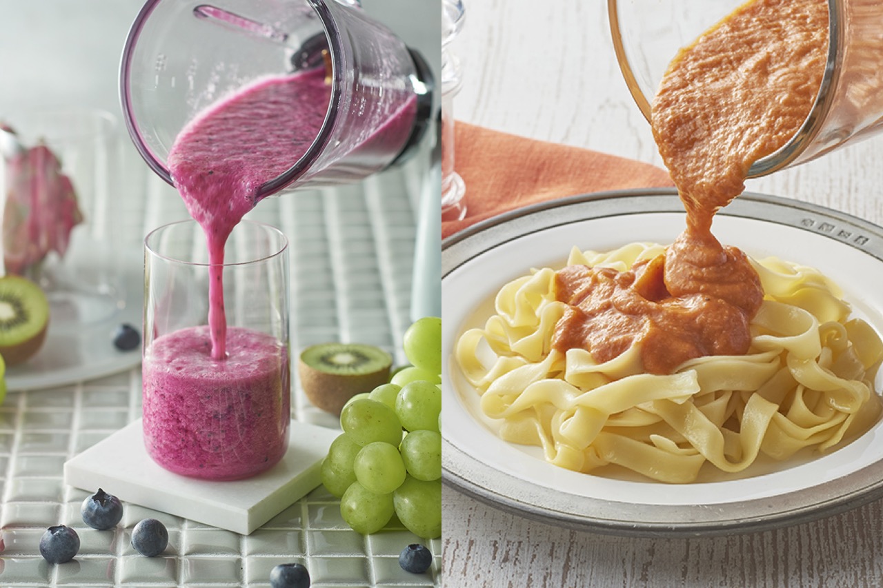 耐熱温度差120°Cまでのガラスジャーを使用した、温・冷対応ブレンダー。ポタージュやパスタソースなどの温かい食材の調理も、食材を冷ます手間がなく時短調理できる。氷(※)から熱湯まで使用できるので、暑い夏はヒンヤ リ涼しくしてくれる冷たいスムージーを、寒い冬にはホット一息つくりたての温かいポタージュを、季節問わず1年中様々なレシピが楽しめる。ガラスジャーは傷がつきにくく、匂いや色移りも少ないうえ、食洗機も使えて毎日のお手入れもラクラク。