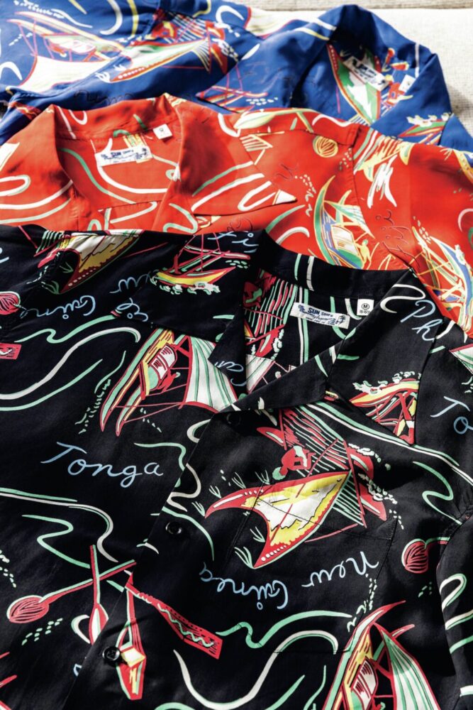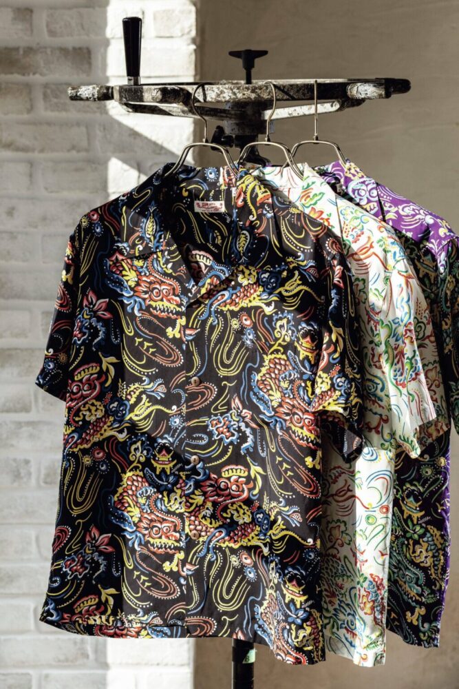 中/この作品のルーツですが中国系移民の文化にあります。彼らは旧くからハワイへ入植して寺院などを作り、様々な中華系の文化をハワイにもたらしました。その後、日本人の移民がハワイに渡りアロハシャツを作るようになり、その影響で中国系移民のテーラーたちもオリエンタルなデザインを手掛けていったんです。
