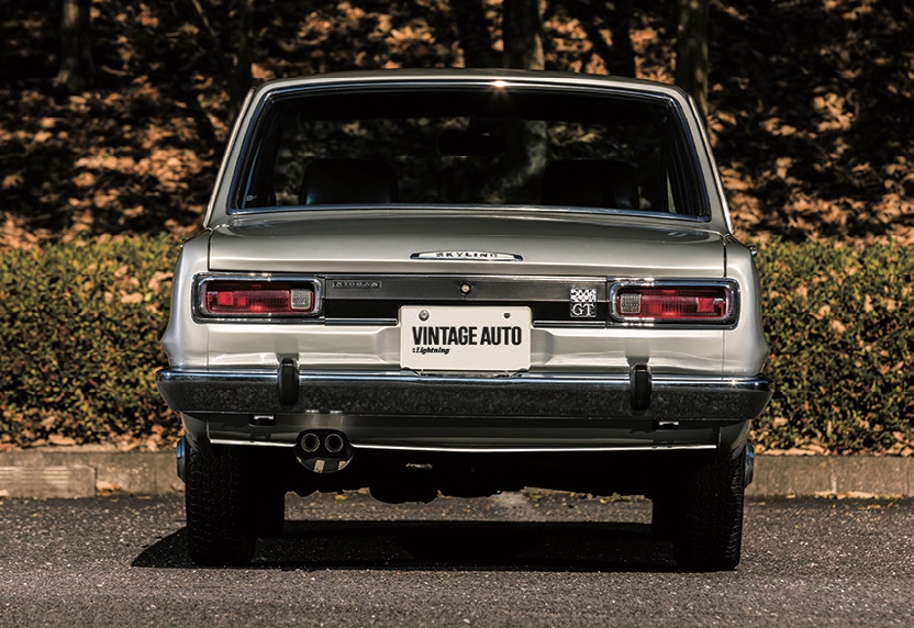 ここに紹介するのはそんな2000GTのオリジナルディテールをしっかりと残す’70年式。スティールホイールに貴重なハブキャップをもつ個体で、GT-Rとは異なる立体的なフロントグリルや、ガーニッシュを有するテール周り、さらにはサーフィンラインと呼ばれるスカイライン独特のリアフェンダーラインなど、GT-Rにはない魅力に溢れた 一台だ。