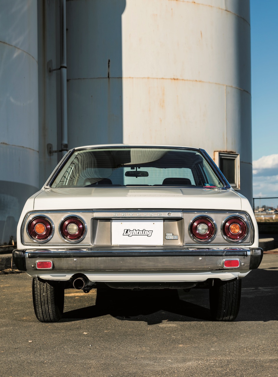 車両は埼玉県の水上自動車工業が所有する、前期型最終となる’79年式のGT-E・L。この年に行われるマイナーアップデートによって角形異形ヘッドライトとなるため、GTとしては最後の丸目ヘッドライト仕様となる。ジャパンは改造されているケースが多く、オリジナルのまま現存する車両が少ないが、このクルマは純正のスティールホイールを履く、珍しくスタンダードな個体だ。