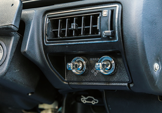 ステアリングコラム右側にはミラーの鏡面調整用レバーが備わる。
