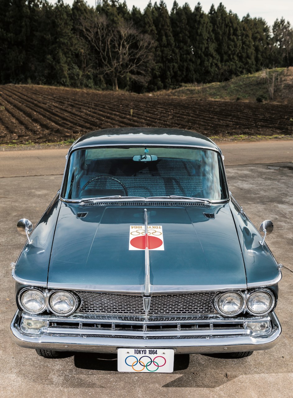 取材車両は’64年の聖火ランナーの随行車両のレプリカで、同じブルーメタリックの車両がランナーに随行している写真が残されている。写真をよく見ると車内にはオカモチのような装置が備わることから、予備の聖火を運んでいたと思われる。ちなみにこのクルマはオリジナルと同じ西陣織生地を入手して張り替えられており、日焼けもまったくない新車のような状態をキープしている奇跡のような一台だ。