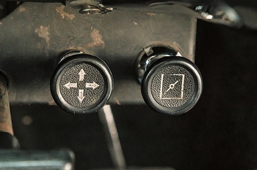 ダッシュ下のチョークレバーとハザードスイッチ。