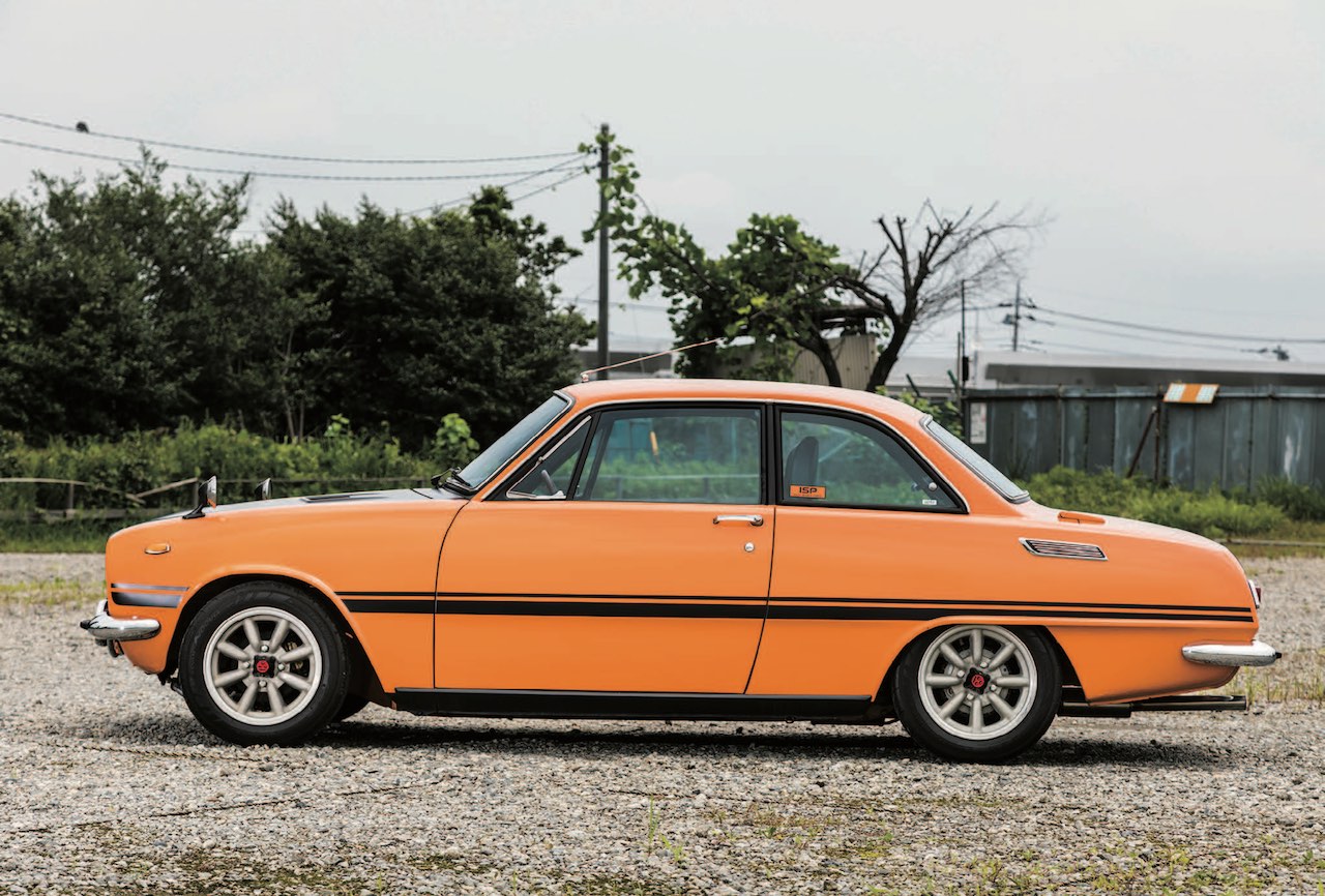 そんなベレットの2ドアクーペに、117クーペに搭載していたDOHCの1.6リッターG161W型エンジンを搭載し、’69年の鈴鹿12時間耐久レースで優勝したベレットGTXを市販バージョンとして販売したのが、ベレットGTRだ。分割されたフロントバンパーにフォグランプをセットし、黒いエンジンフードやサイドの専用ストライプが備わるのが特徴だが、ノーマルカラーバージョンのエンジンフードやストライプなしも購入可能だった。GTRは’73年まで生産され、総生産台数は約1400台と、スペシャルティカーとしては異例のロングセラーと好セールスを記録した。