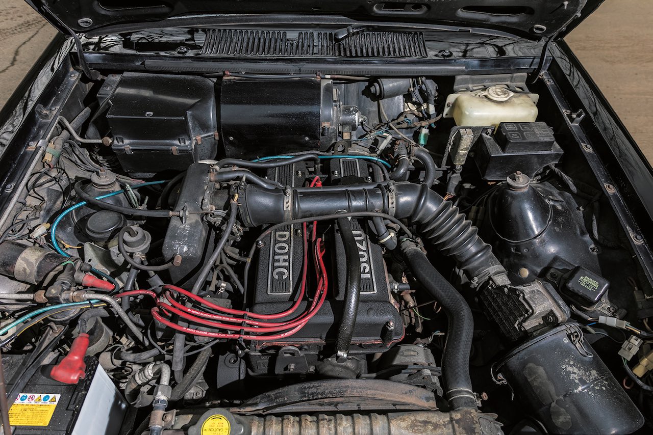 エンジンは1.8リッターのDOHCのG180W型1817cc。黒いヘッドカバーが精密組み立てされたブラックヘッドエンジンの証。