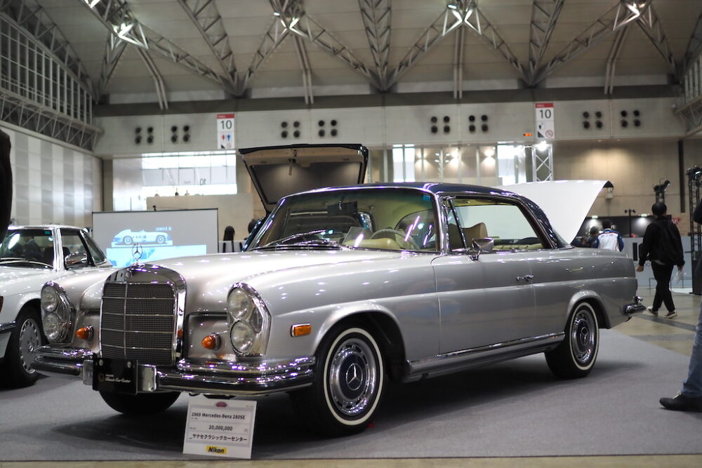 タテ目のクーペボディという老紳士が乗っていたら似合うクラシックメルセデスはヤナセクラシックカーセンターがレストアした由緒正しき個体。いまやタテ目のメルセデスも高騰物件なのか、ここまでのクオリティだと2200万円だという。ため息しか出ない。