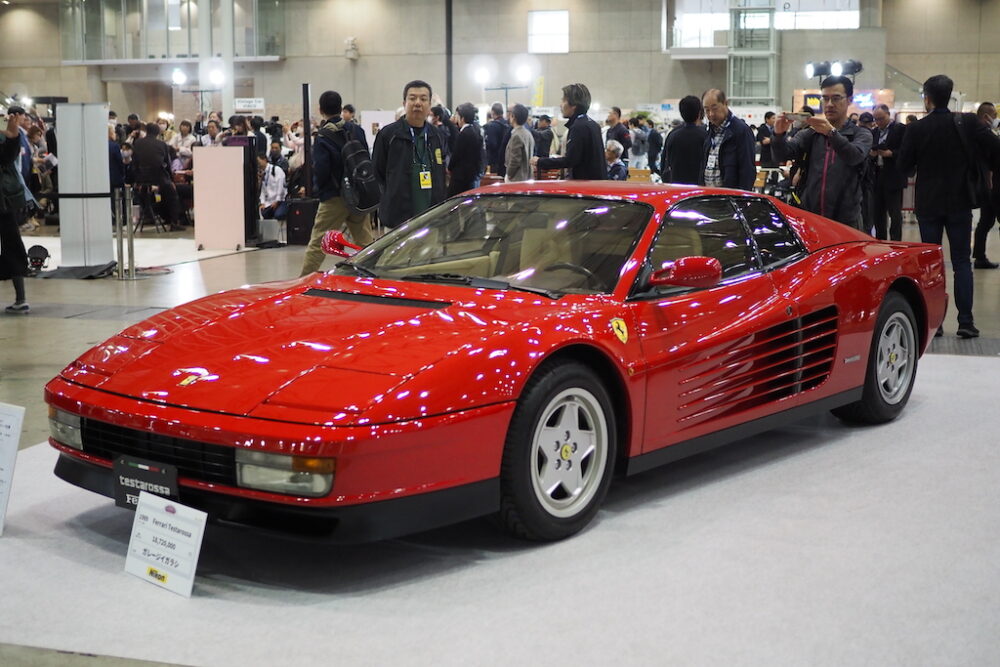 オールドフェラーリの代表的なモデルであるフェラーリ・テスタロッサ。やはりフェラーリと言えば真っ赤なボディがよく似合う。リトラクタブル式のヘッドライトやミッドシップのエンジンを冷やすために設けられたボディサイドの大きなエアインテークが特徴的。ミニカーでしか見たことがない子どもたちのまなざしを集めていた。日本ではバブル世代憧れの1台。1872万円