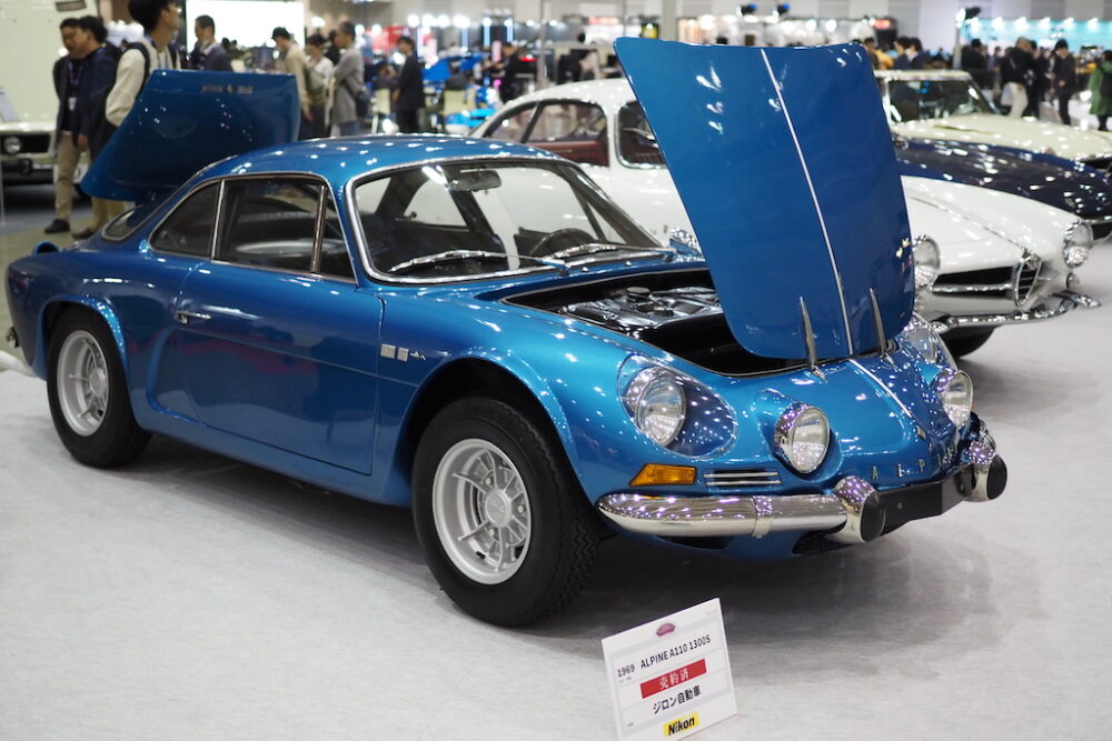 FRPのモノコックボディにRR(リアエンジン・リアドライブ)という機構で数々のラリーで好成績を収めた名車であるアルピーヌA110。現車は売約済だったけど、1450万円のプライスだったとのこと。世界の名車の高騰はとどまるところを知らないけれど、しっかりと売れているっていう事実がスゴイ。おじさんたちはA110を「えーひゃくとう」と呼ぶ。