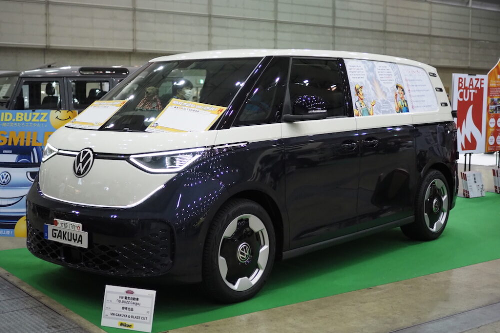 EVとして生まれ変わったVWタイプ2の後継モデルであるID.Buzzが特別展示。初めて現車を見るという人も多かっただけに多くの人の足を止めていた。これはカーゴモデルなのでボディサイドがパネルになっているのが特徴。こんな働くクルマだったら仕事も楽しくなるってもんだ。