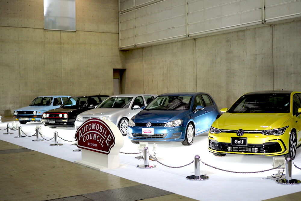 ゴルフの生誕50周年を祝した特別展示には歴代ゴルフがずらりと並ぶ。もはや初代ゴルフも立派なオールドモデルといってもいい年式。ヤングタイマー好きにはゴルフ2が大人気。クラシカルなモデルは昭和レトロブームと連動して若い世代にも注目を集めている。