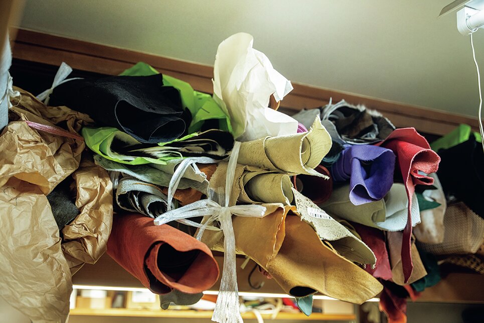 工房に行けば、直接オーダーできるのがKIGO。実際に裁断前の革を見ながらデザインを決めることも可能だという。