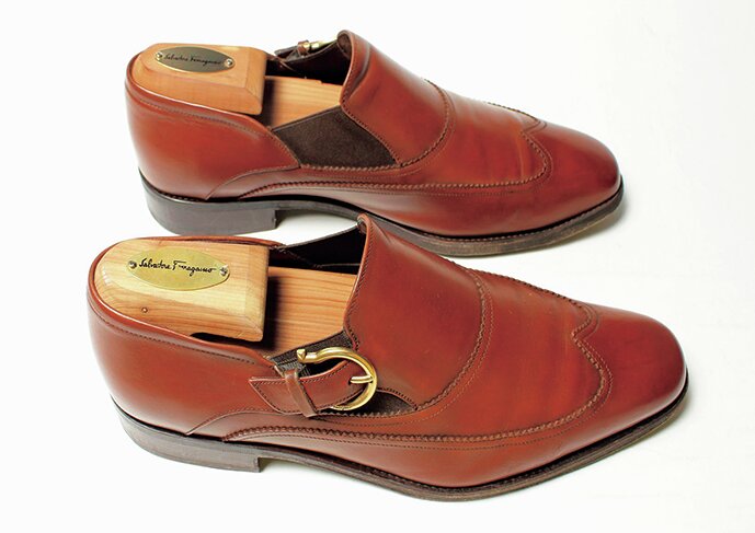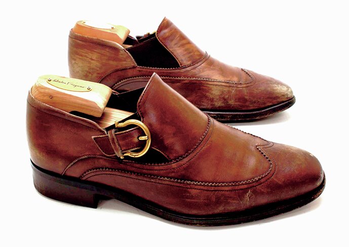 ワークブーツやエンジニアブーツなら、多少の傷や色擦れは気にならないが、ビジネスシーンでも履くような革靴だとそうもいかない。色の擦れや革の傷みも、ザ・レザードクターズならきちんと処置してくれる。写真を見てほしい。くたびれた革靴も美しく甦った。