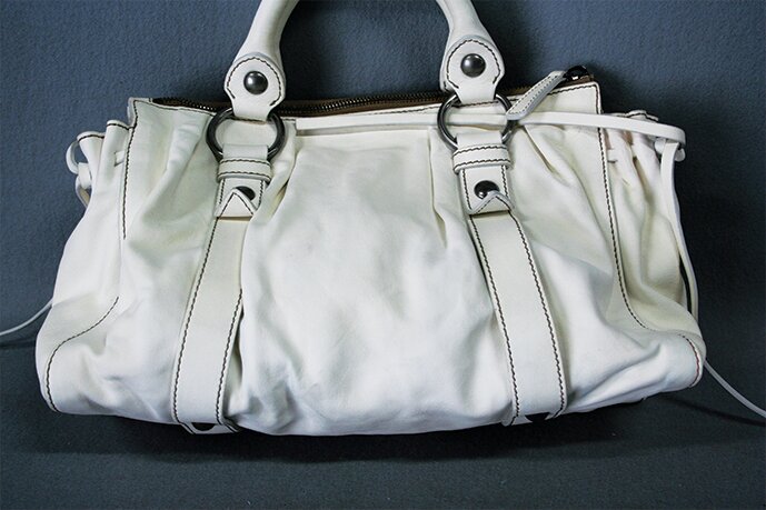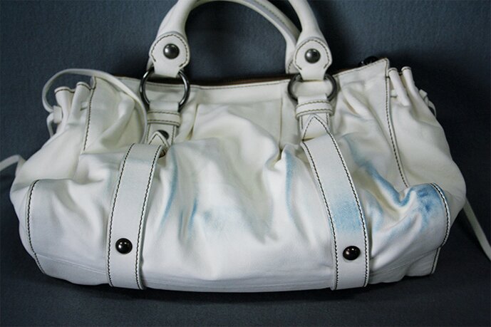 バッグにデニムのインディゴの色が移ってしまった……というのもよくある話。特に色の薄いレザーバッグだと、インディゴの青が目立って汚く見えてしまう。ザ・レザードクターズでは、革の風合いはそのままに、上から色を吹き付けてインディゴを消してくれる。