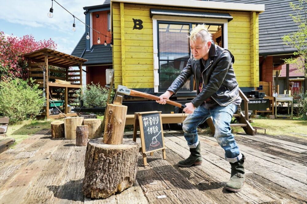 例えばアウトドアギアや自転車、サーフボードなどが置かれており、「BESSの家を手に入れたら、こんなインテリアにしてみたいな〜」がリアルに表現されているのだ。LOGWAYなら、将来の自分の理想とする暮らしをはっきりとイメージできるはずだ。実際にウッドデッキのハンモックでのんびりしてみたり、薪割り体験だって楽しむこともできる。こんな楽しい住宅展示場、他にある?