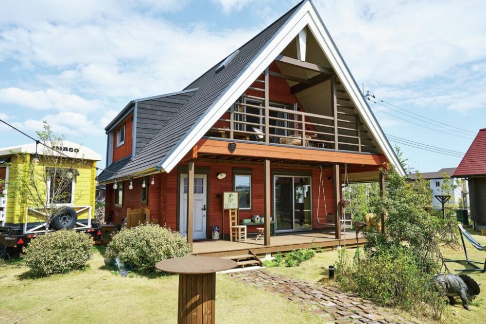 急勾配の三角屋根が目を引くGログ。このGログの魅力は、2階にある超ベランダ空間「NIDO(ニド)」。広々としたニドをどう使うかで、この家の楽しみ方が変わってくる。ただ洗濯物を干すだけじゃ、あまりにもったいない。お茶を飲んだり食事をするのもアリだ。
