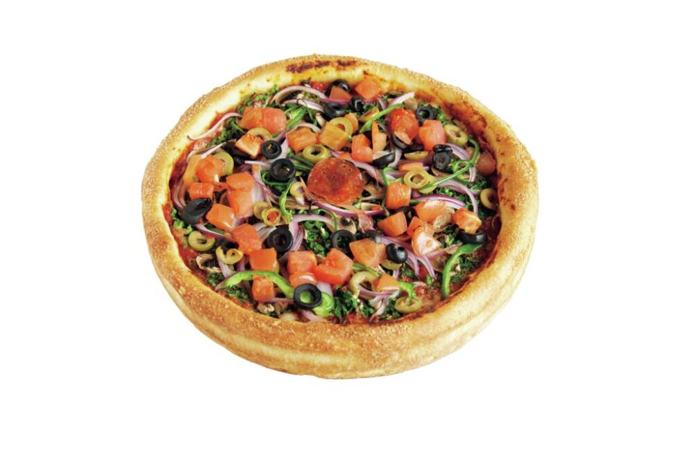 一番人気のピザは、デビルワークス。いろんな種類のお肉と野菜がたっぷりと使われており、シカゴピザの真髄を感じられる美味さだ。オリジナル S : 2390円 L : 4780円 デラックス S : 2890 L : 5780円