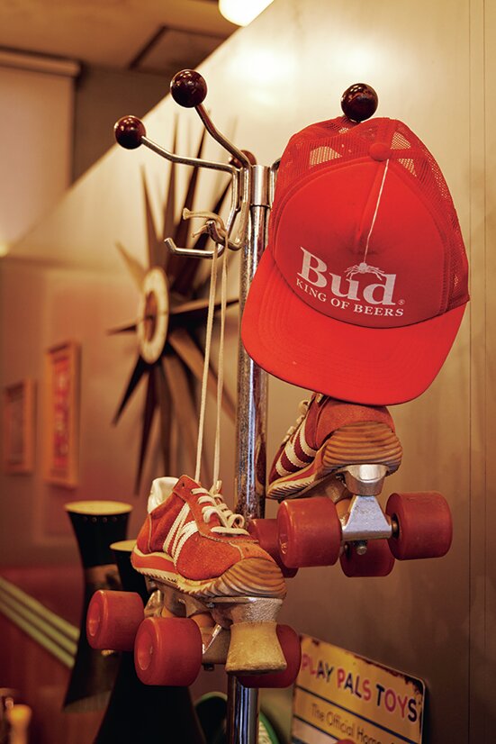 石澤さんは70年代〜80年代のアメリカンカルチャー愛好家で自分の趣味部屋のような空間を作りたいという一心でファニーガンズを開業。フードメニューも豊富でビックな生ソーセージや生地から作る自家製ピザなどアメリカンフードでお腹を満たすこともできる。