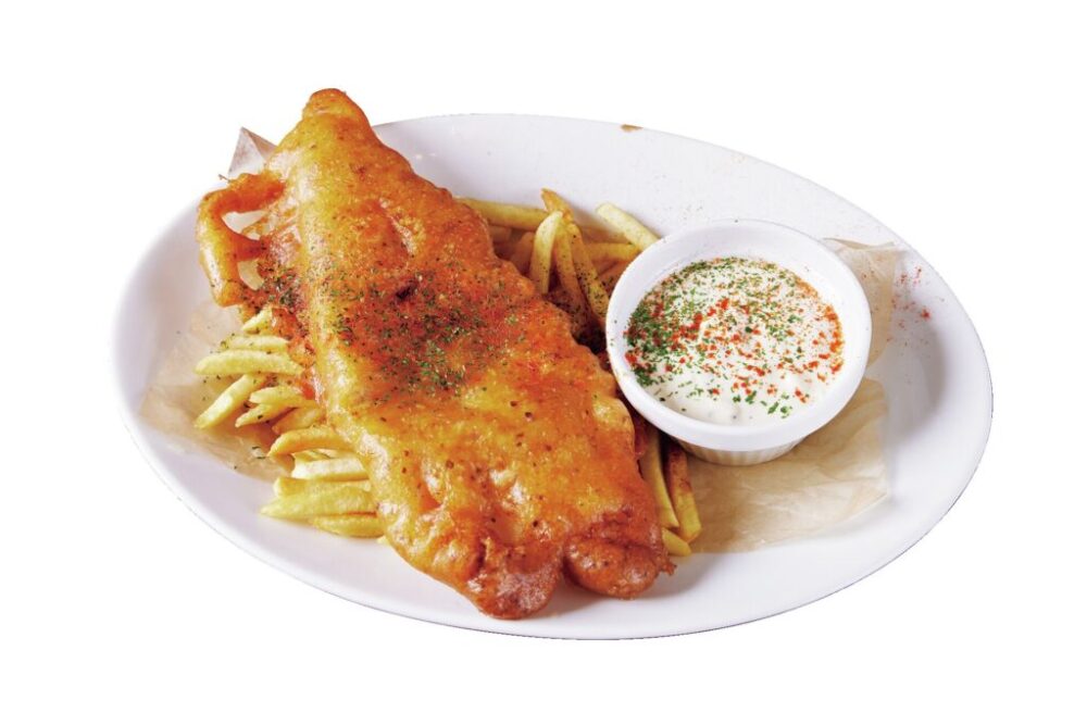 ドカっと白身フライが乗ったインパクト大のサブメニュー。外はカリカリ、中はフワッとした仕上がりで、オリジナルスパイスで味付け。1000円